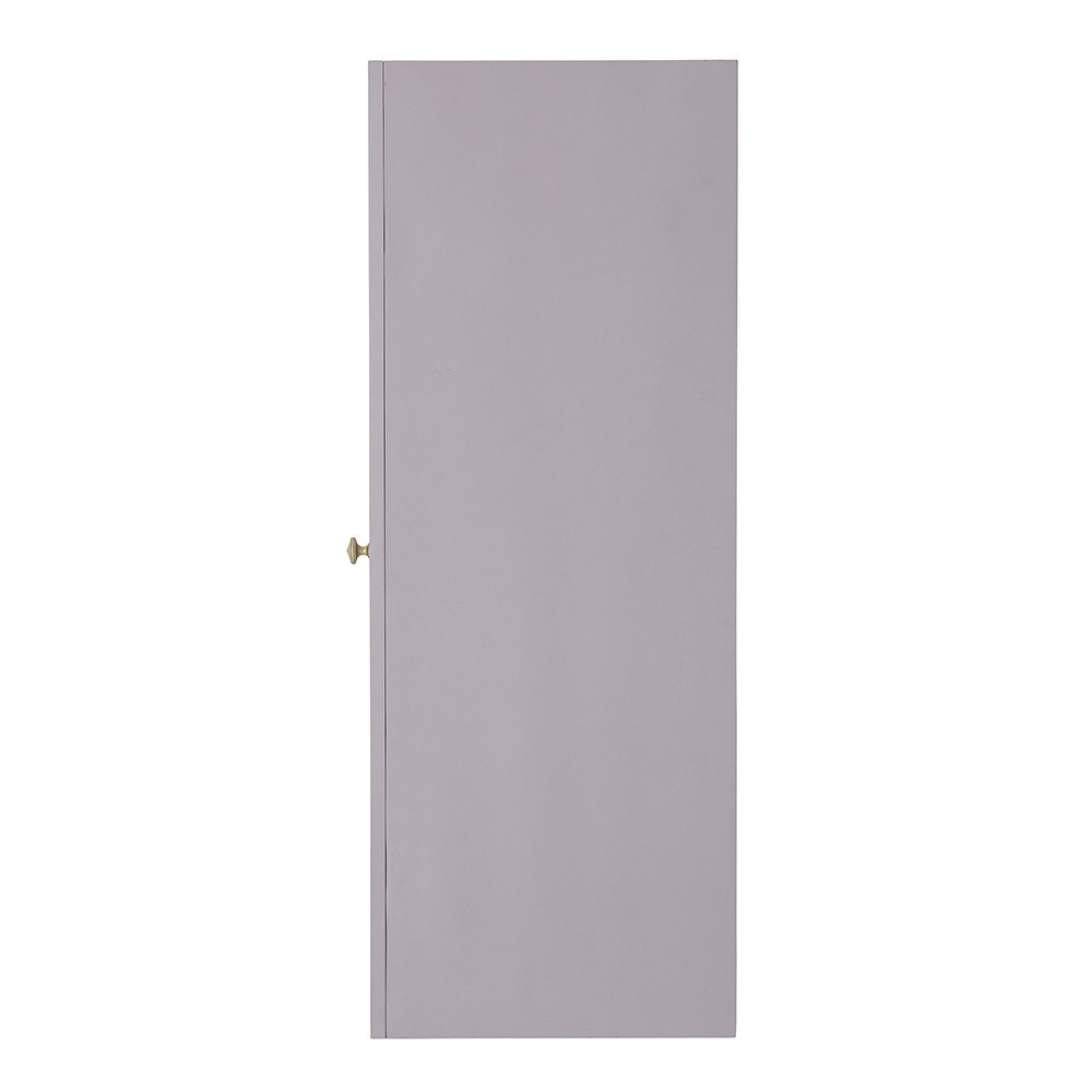 Bloomingville's Nell cabinet is a beautiful light purple wall cabinet. The front of the cabinet has a pretty stamped graphic pattern and a brass handle.