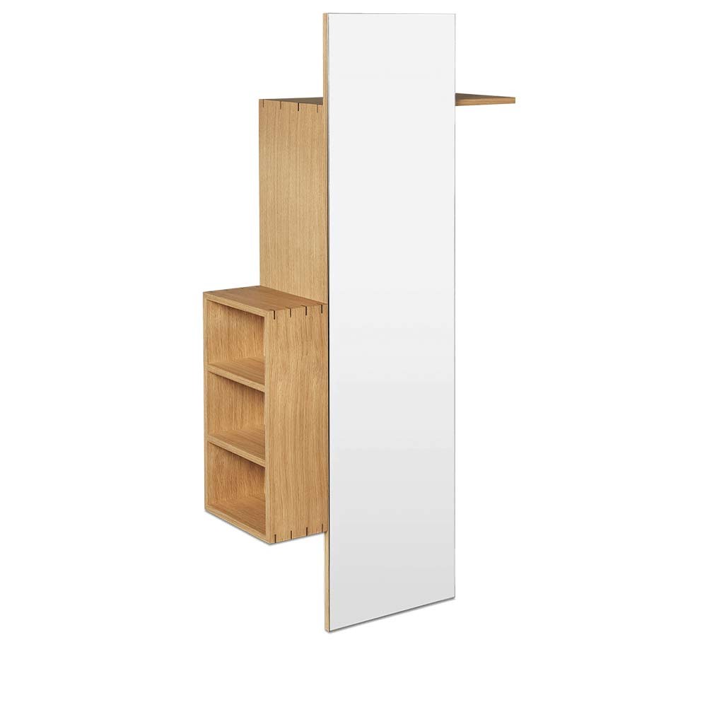 The Bon hallway wardrobe is an elegant and functional storage solution that fits perfectly into any space. Ideal for the hallway or bedroom, it features a shelf, a rack, a mirror and practical narrow shelves on the side, allowing you to store coats, bags, keys, gloves, etc. The product is FSC™ certified and made from oak veneer and an MDF core.