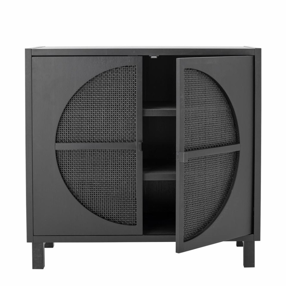 Check out the Trento cabinet from Bloomingville, a spacious wooden cabinet with a rattan door in a warm black color. The cabinet has two fixed shelves inside and a magnetic closure.
