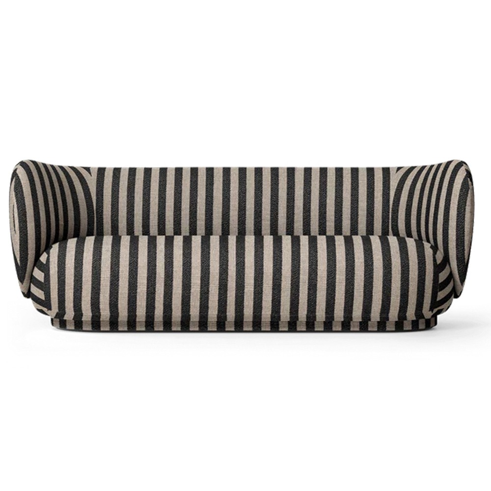 Discover the Rico Louisiane 3-seater sofa in textured linen fabric. The clean, classic expression of the striped textile was designed in partnership with the Louisiana Museum of Modern Art and contrasts beautifully with the soft, voluminous curves of the Rico sofa. Perfect in the living room, you can enjoy a moment of calm in its comfortable, curved embrace.