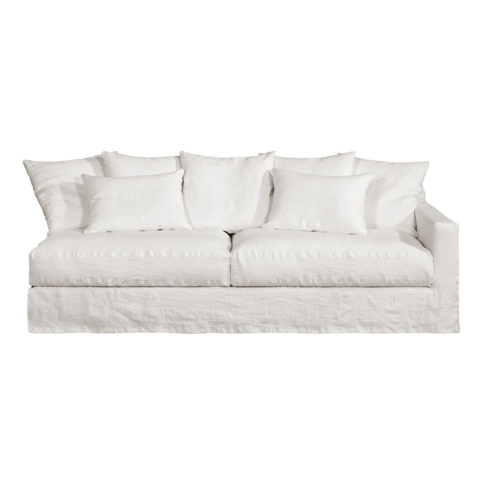 Discover the Biarritz linen bastard sofa, mixing the bohemian chic style with an unbeatable design look. You will love to curl up in its large feather cushions which ensure an optimal comfort. Entirely made in France, this sofa will bring an air of elsewhere to your interior and a seaside touch. It will combine perfectly with natural materials such as wood and jute. The Biarritz bastard sofa is available in several fabric finishes: natural, pebble, white, olive green ... you will find the color that will blend perfectly with your interior. This sofa can also be convertible (optional). For easy maintenance, the seat and back cushions are removable.