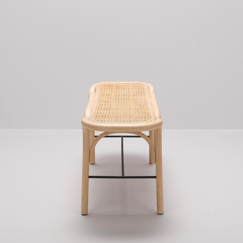 Orchid Edition, rattan's lover, offers you this nice bench Traverse designed by Acal Studio. The structure is in debarked rattan and in cane with checkered reinforcements on nylon straps for the seat. Its natural varnish color and rounded shapes recall the know-how of weaving exotic baskets.