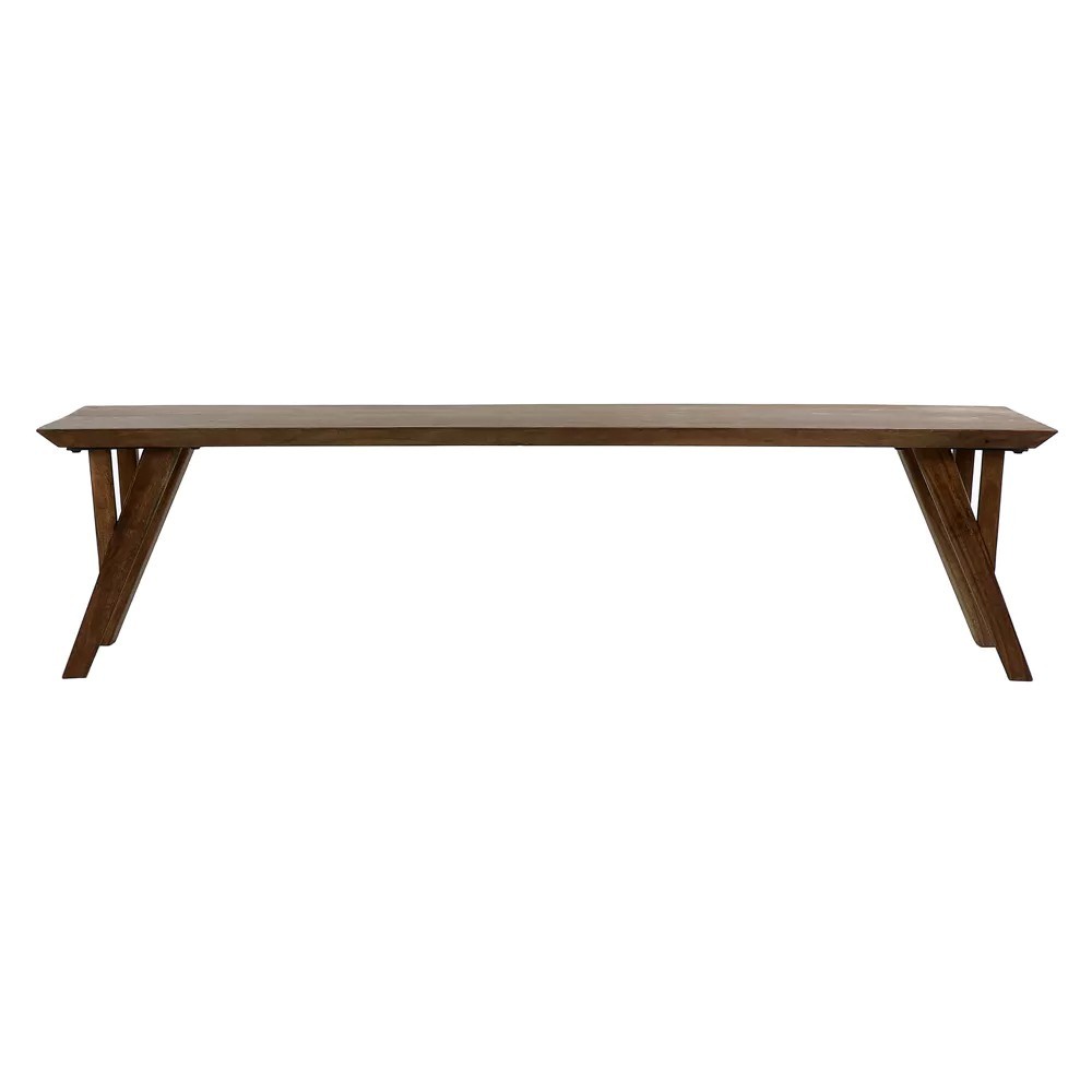 Discover the Hopper bench from Pomax, made from accacia wood. This bench, with its sloping legs, is not only pleasing to the eye but also very practical.