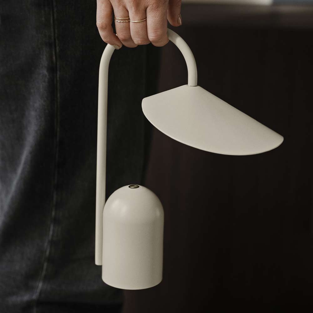 The Arum portable lamp is a versatile, mobile lighting solution. This small, portable LED lamp is rechargeable via USB-C, allowing you to create a comfortable environment wherever you go.This portable version is made entirely from powder-coated iron and aluminum, offering durability and an elegant finish. The lamp features a three-level touch dimmer, offering adjustable ambient lighting to suit your needs.