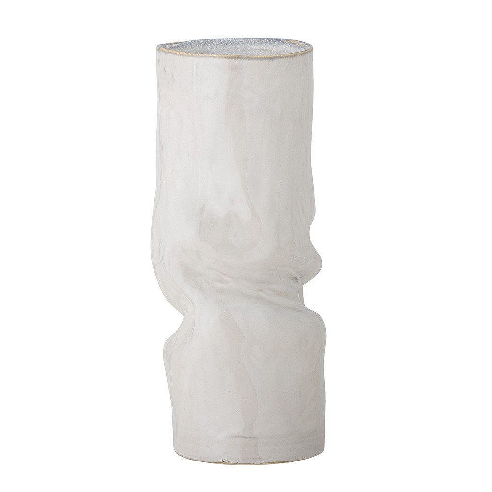 Bloomingville's Araba vase, in stoneware, is coated with a white reactive glaze. The vase has a distorted appearance. Due to the nature of the glaze and the artisanal technique, variations may occur.