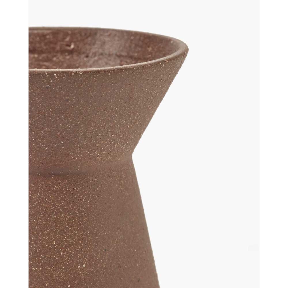 Marie-Ann is a collection of vases and two candleholders in red clay enriched with chamotte, offering a raw, matte texture to the touch. Unglazed on the outside, each object has an inner silicone coating that makes it watertight. The collection's deliberately archetypal and geometric shapes give it great versatility, adapting harmoniously to a variety of interior styles.