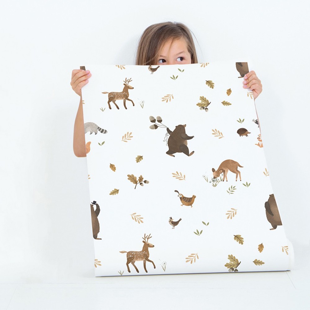 Discover this magnificent non-woven wallpaper from the NORWOOD collection, featuring forest animals to personalize your child's bedroom. Nonwoven is a material that has revolutionized the world of wallpaper: it's easy to hang, no need for a wallpapering table, the glue is applied directly to the wall and it requires no special preparation and is easy to cut with a cutter.