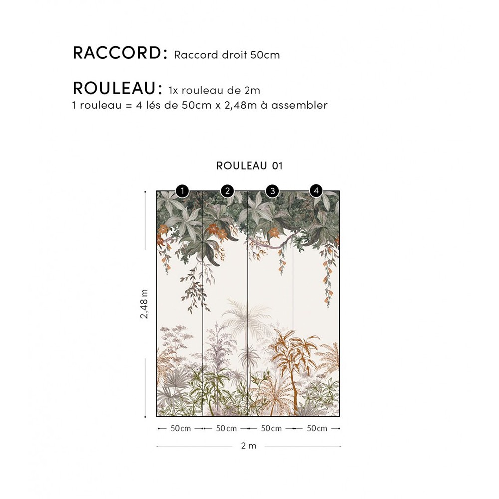 Discover this magnificent panoramic wallpaper from the Utan collection in non-woven paper with an Indonesian jungle motif to personalize your child's bedroom. Nonwoven is a material that has revolutionized the world of wallpaper: it's easy to hang, no need for a wallpapering table, the glue is applied directly to the wall and it requires no special preparation and is easy to cut with a cutter.