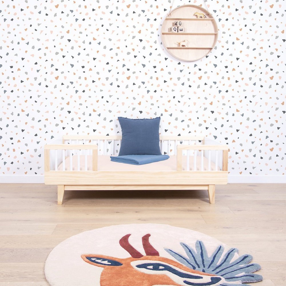 Discover this magnificent non-woven wallpaper from the Tanzania collection, with its pattern of spots in different colors, to personalize your child's bedroom. Nonwoven is a material that has revolutionized the world of wallpaper: it's easy to hang, no need for a wallpapering table, the glue is applied directly to the wall and it requires no special preparation and is easy to cut with a cutter.