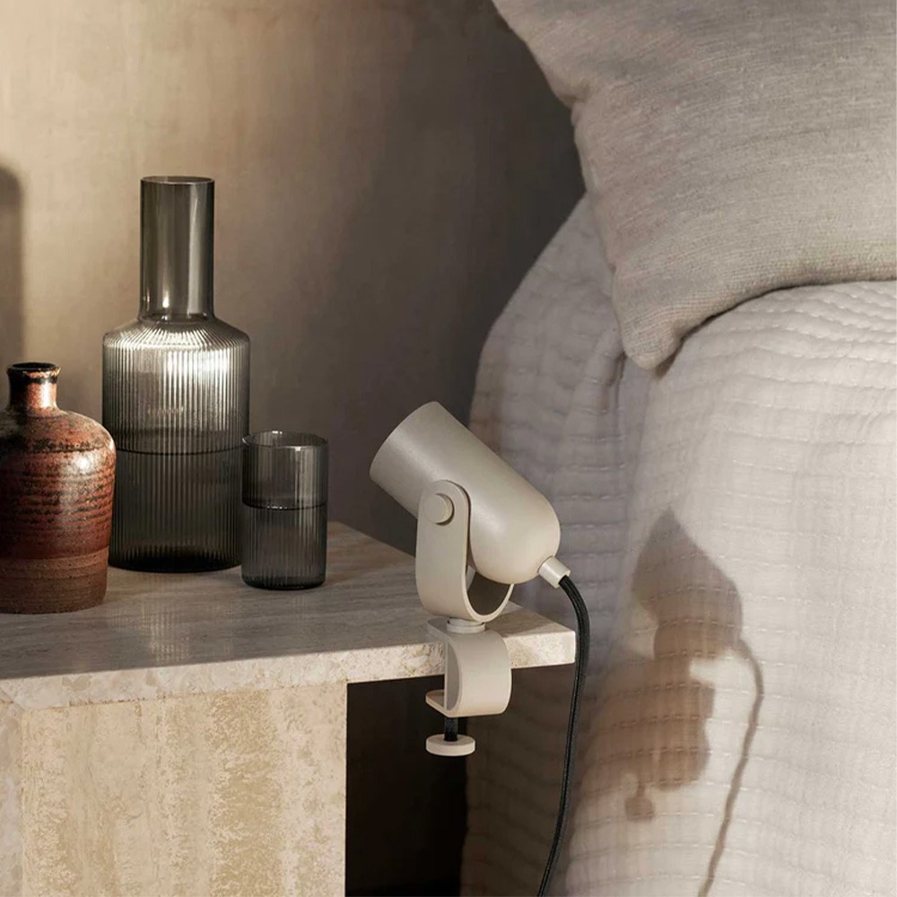 Discover the Ruuvi lamp from Ferm Living. Practical and durable, it features with convenient thumb grip screws, the Ruuvi lamp shade can be adjusted to provide light in any direction, while the clamp system allows the lamp itself to be attached to any surface.