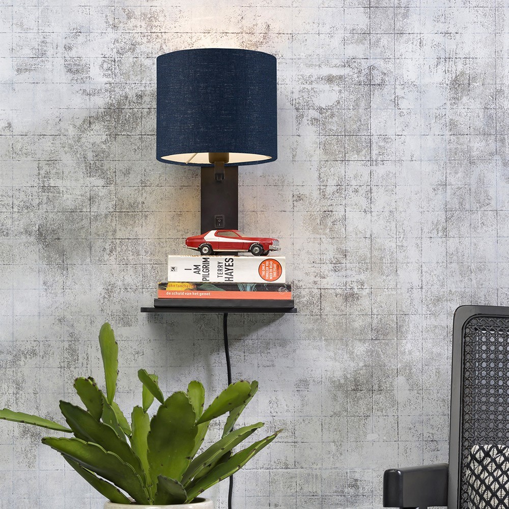Discover here the black and navy blue Andes wall and shelf wall lamp designed by the Good & Mojo brand. This lamp, which also acts as a shelf, is made of bamboo and ecological linen. In a Scandinavian and eco-responsible style, it will bring a designer and original touch to your interior. This lamp will be perfect in a bedroom, above a bed to store your evening readings or in a living room, near the sofa.