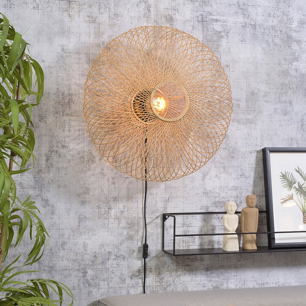 Discover here the natural Cango wall lamp which was designed by the Good & Mojo brand. This eco-responsible Scandinavian lamp is made of bamboo, it will bring freshness to your home. This wall lamp will be perfect in a bedroom, living room or dining room. Its round woven lampshade will bring an original design and enlarge your rooms. Its sun-shaped design will brighten up your spaces. Prefer a bulb to warm light for a subdued atmosphere.