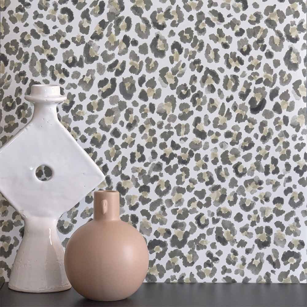 This wallpaper, created in collaboration with Inès Olympe Mercadal, revisits leopard print with a touch of fantasy.
