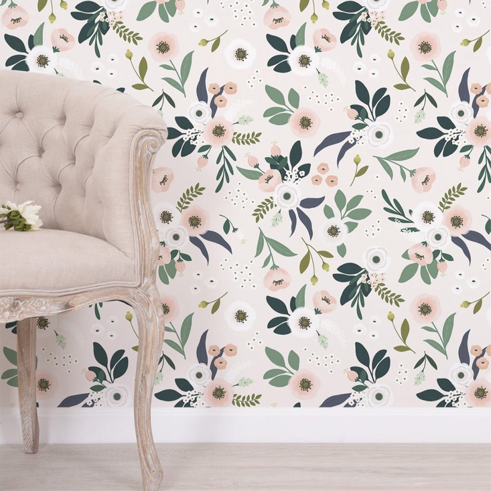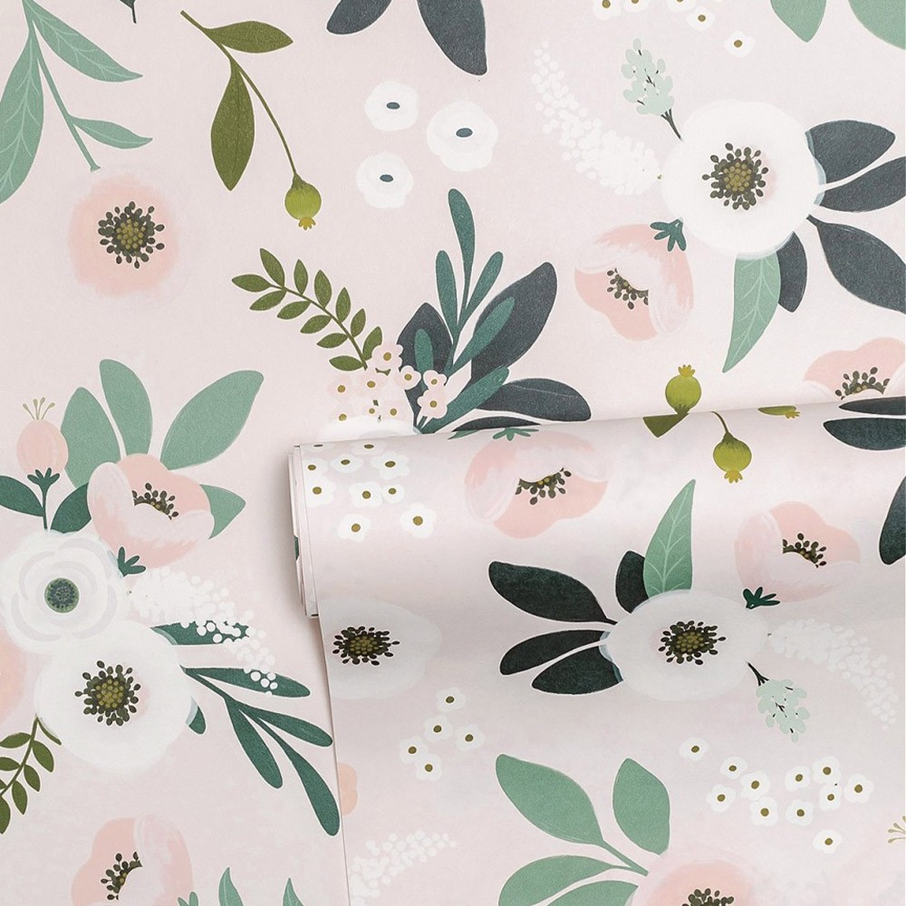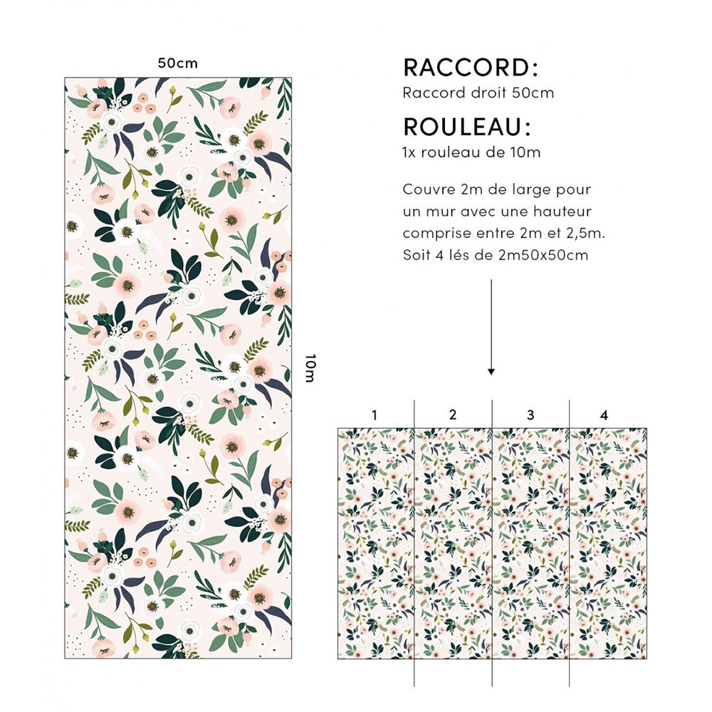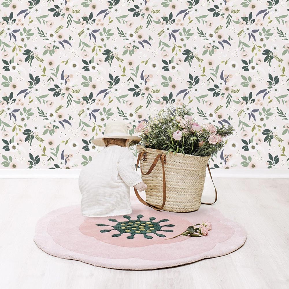 Discover this beautiful Wonderland wallpaper in non-woven paper with anemone flowers as a pattern to personalize your child's room. Nonwoven is a material that has revolutionized the world of wallpaper, easy to install, no need for a wallpapering table, the glue is applied directly to the wall and it requires no special preparation and is easily cut with a cutter.