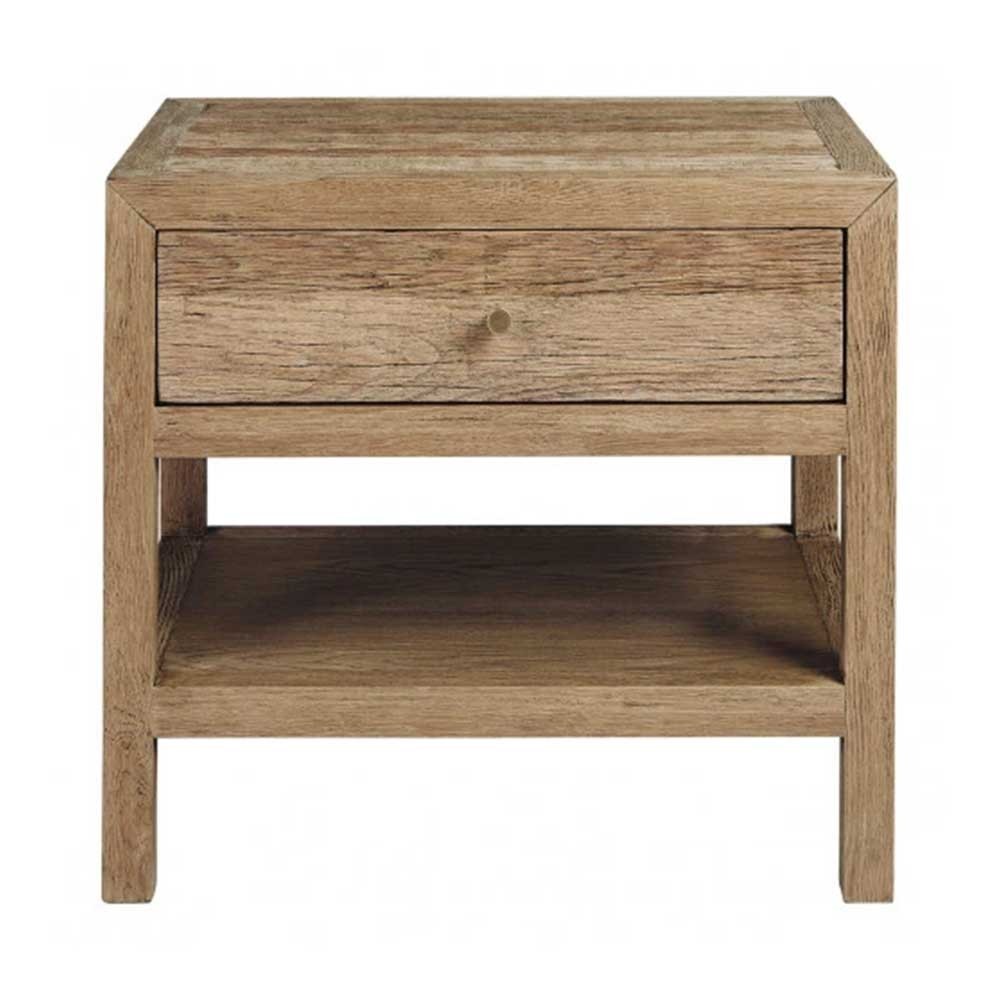 Inspired by the rough-hewn charm of old country workbenches, the MARCELLE bedside table seduces with the warmth of its light reclaimed oak. Its natural wood grain and solid structure give it an authentic, timeless character, capable of harmonizing with any decorating style. Functional, it features an open niche and a drawer, perfect for keeping your essentials close at hand.
