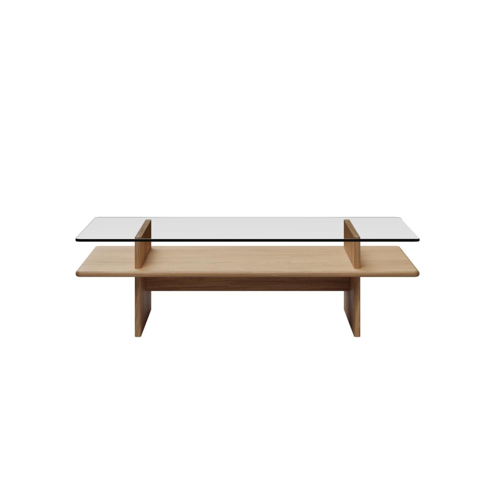 La mesa de centro Parallel FSC ™ est iInspirada en las vitrinas de los museos, la mesa de centro Parallel juega con la integración de las galerías de arte en el hogar. Gracias al cristal, el espacio entre los planos horizontales se convierte en una estética zona de exposición de libros y objetos decorativos en el salón.