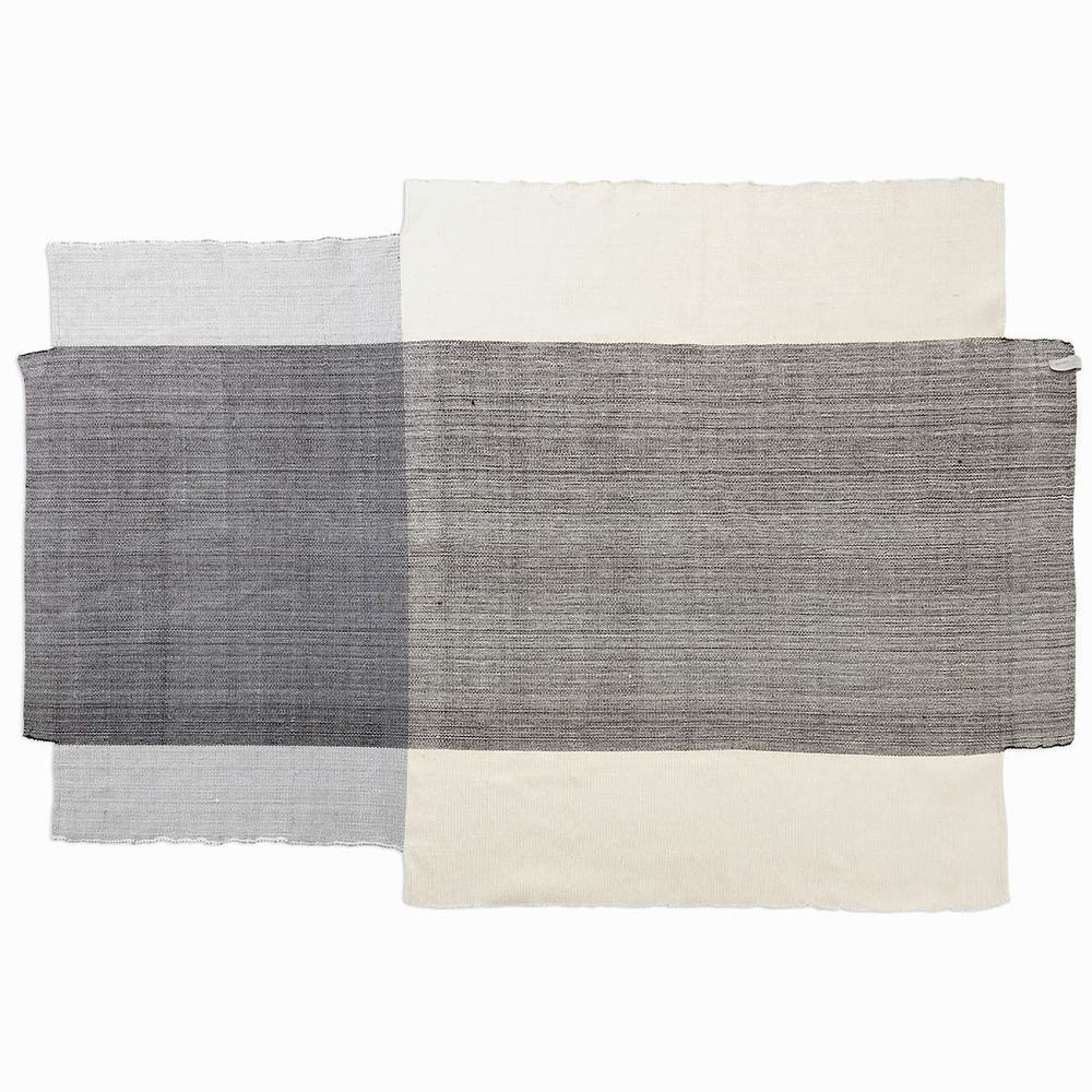Las alfombras M gris y crema Nobsa son alfombras de lana tejidas a mano, fabricadas en una pequeña empresa familiar con sede en la ciudad homónima de Nobsa en Colombia. Sebastian Herkner diseñó las alfombras NOBSA para las almas, creando el efecto de dos alfombras superpuestas. La diseñadora se inspiró en los patrones de las bolsas plásticas en las que los agricultores colombianos llevan sus papas. La elección de los colores y la técnica de tejer en diferentes direcciones dan a las alfombras NOBSA su aspecto particular e increíblemente original.