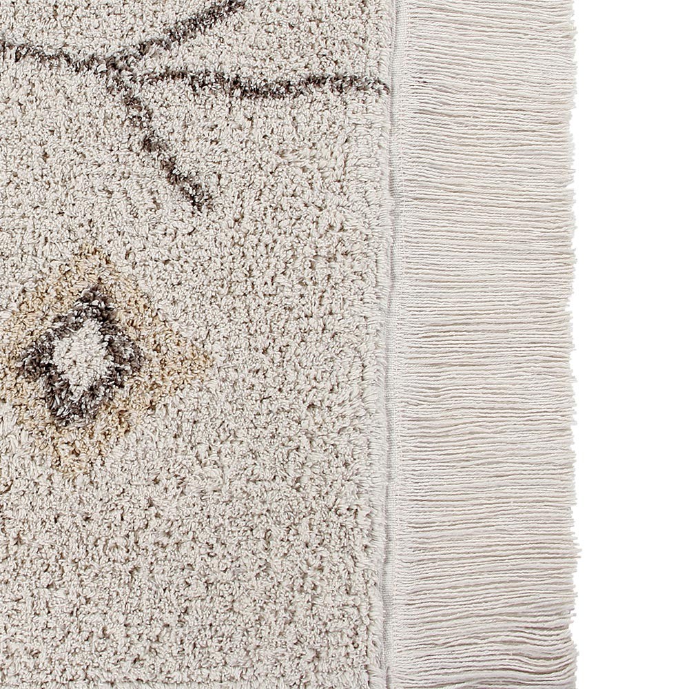 Lorena Canals ofrece una amplia gama de alfombras de algodón lavables. La alfombra está hecha de algodón y tintes no tóxicos. Con flecos en los lados y patrones de colores naturales, esta alfombra de barro lavable Kaarol quedará perfecta en tu salón o dormitorio. Esta alfombra tiene hermosos tonos verde oliva, miel, marrón oscuro, marfil y nude.