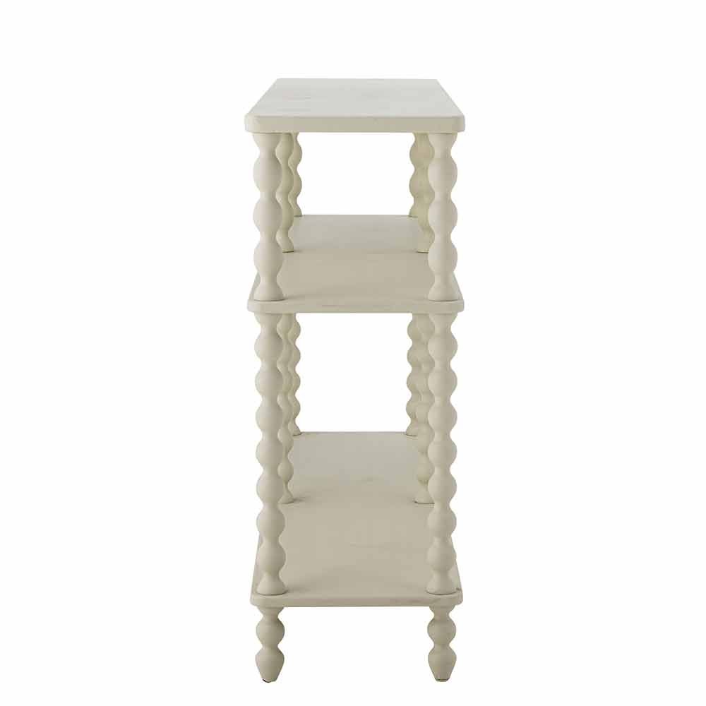 La consola Salino de Bloomingville es un encantador mueble de madera de caucho, diseñado con un aspecto delicado. Su superficie lisa y su color blanco roto crean un ambiente armonioso y acogedor. Esta consola es ideal para el dormitorio, el salón o el recibidor, y también es un detalle encantador en el dormitorio de un niño.
