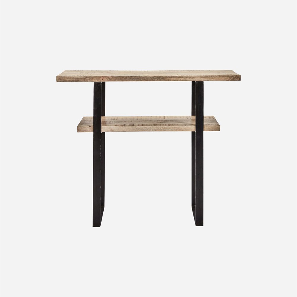 Descubra la magnífica mesa consola Woda de House Doctor, con sus líneas minimalistas de madera de mango claro y marco de hierro negro que creará un toque moderno en su hogar. Perfecto en un pasillo o sala de estar.