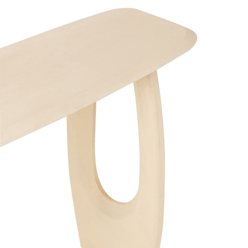 La consola Mark beige es la personificación de la sencillez y el refinamiento, con un diseño elegante perfecto para cualquier estilo de interior. Sus originales patas añaden un toque único y moderno, haciendo de esta pieza un auténtico activo decorativo que combina funcionalidad y estética.