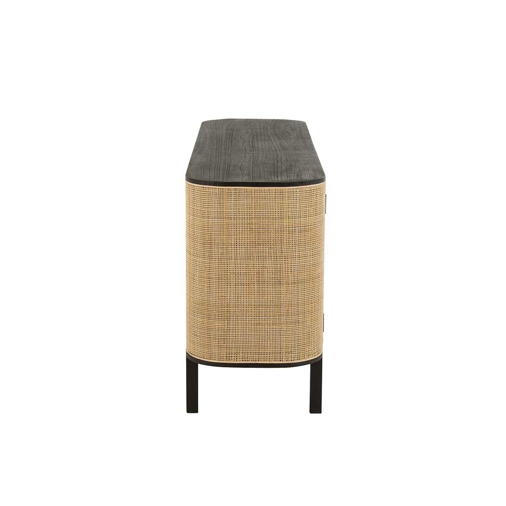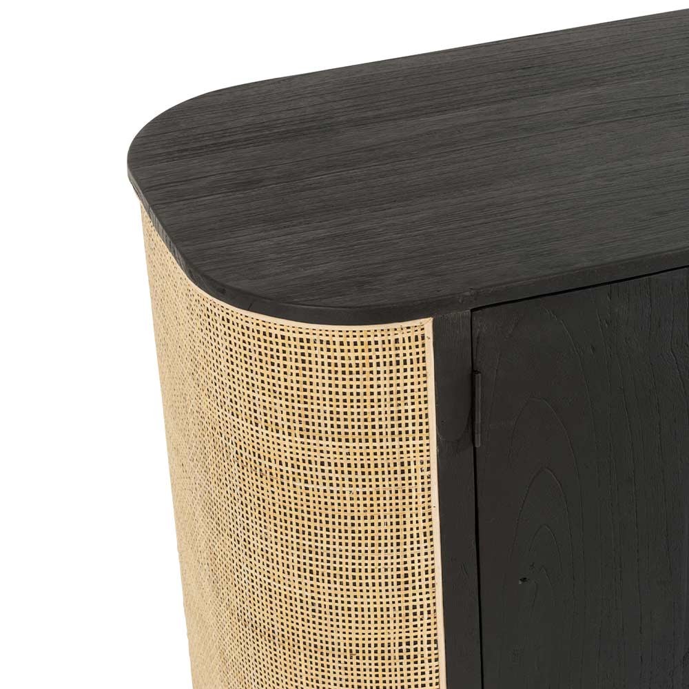 El buffet Molly de 3 puertas es un mueble que combina a la perfección estética y funcionalidad. Fabricado en madera exótica, conocida por su robustez, y adornado con paneles de ratán en tonos naturales y negros, aporta un toque de elegancia y carácter a su decoración interior. Con su diseño sólido y refinado, este aparador es ideal para optimizar su espacio de almacenamiento y convertirse al mismo tiempo en un elemento central de su habitación, ya sea un salón, un comedor o un recibidor.