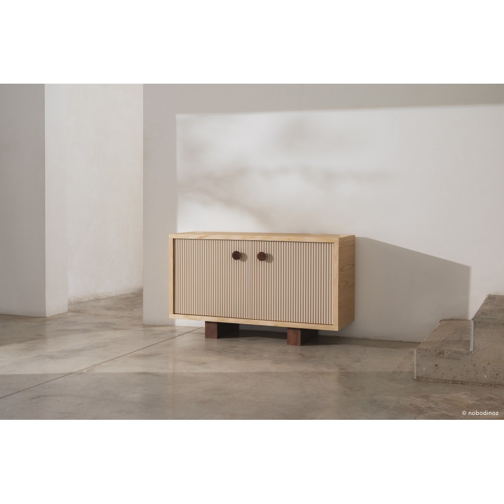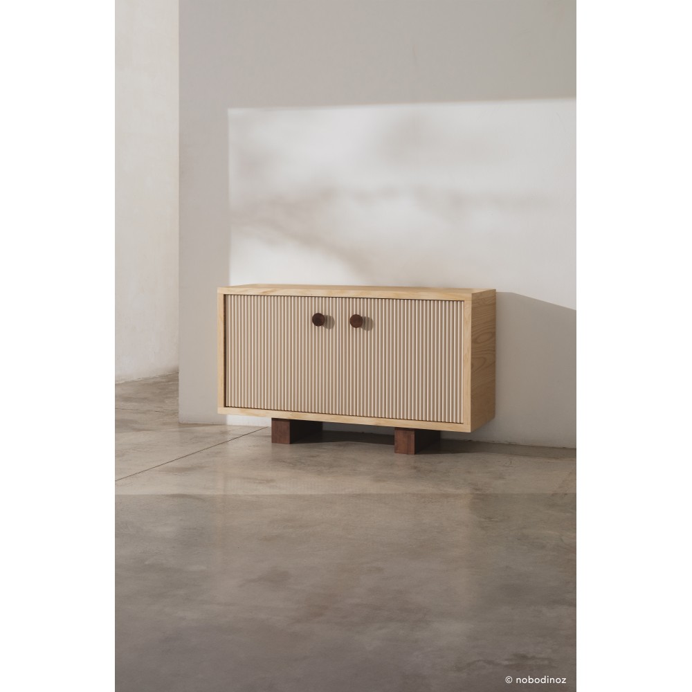 - Bois massif d’hévéa et placage de 3mm de bois de frêne