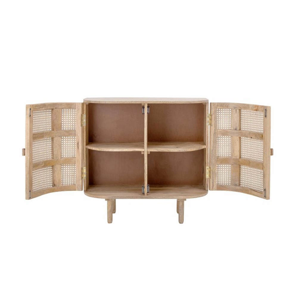 Descubra el armario Bandol de Bloomingville en madera de mango. Con su diseño curvo y sus puertas decoradas con ratán que le dan una expresión suave y orgánica. Perfecto en cualquier habitación, le aportará un toque cálido.