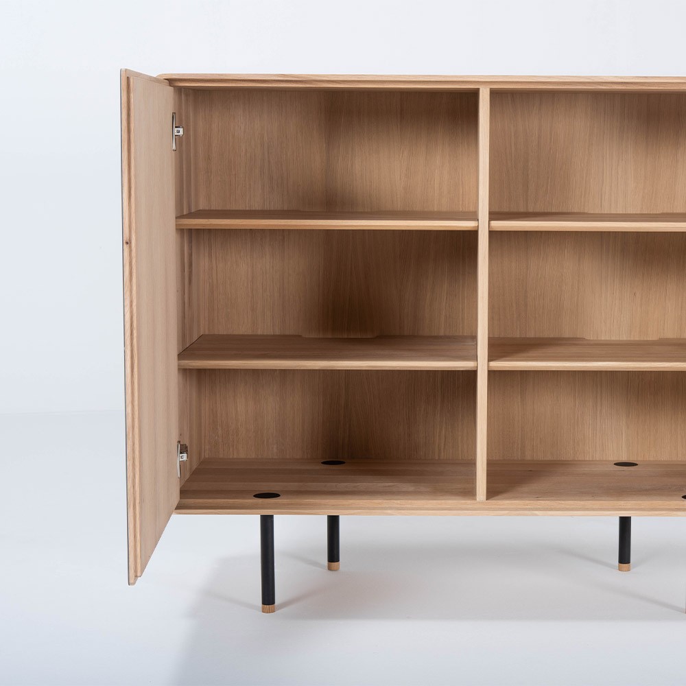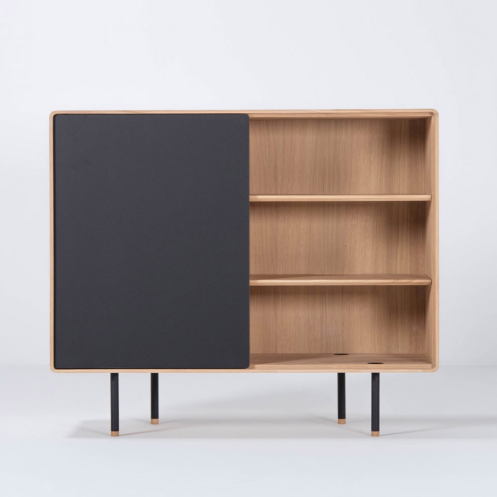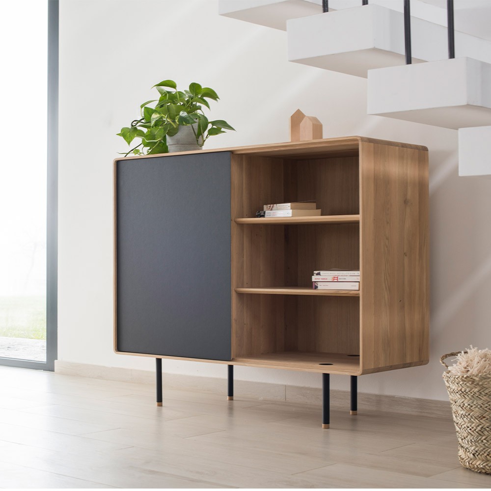 Déjate seducir por el encanto y la autenticidad de la gama de cómodas y muebles de almacenaje Fina de Gazzda. La cómoda y compacta 118 Fina con cajonera con armario aportará calidez a su interior. La combinación de auténtica madera de roble y linóleo negro profundo la convierten en una pieza elegante y minimalista. Disponible en colores roble y crema. También disponible en versión con cajones. ¡Descubra todos los demás modelos de la gama en Moodntone sin más demora!