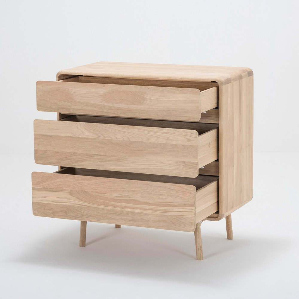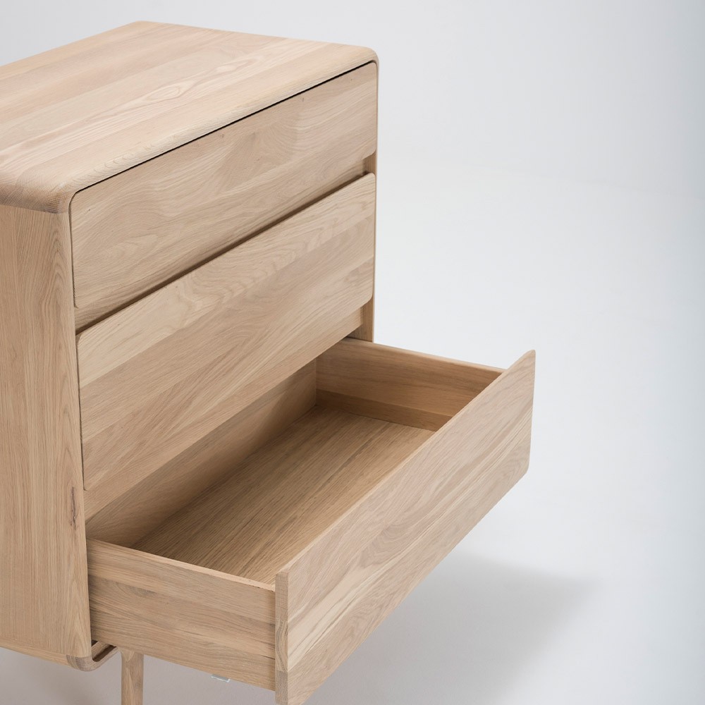 ¿Busca espacio de almacenamiento adicional en su dormitorio? ¿Por qué no enamorarse de la gama de almacenamiento Fawn de Gazzda? Para guardar calcetines y ropa interior, nada mejor que la cómoda de 3 cajones Fawn en delicado roble. Poco más, su sistema de amortiguación al cerrar puertas y cajones hará que tu día a día sea mucho más agradable! No dude en descubrir el resto de la gama en Moodntone.