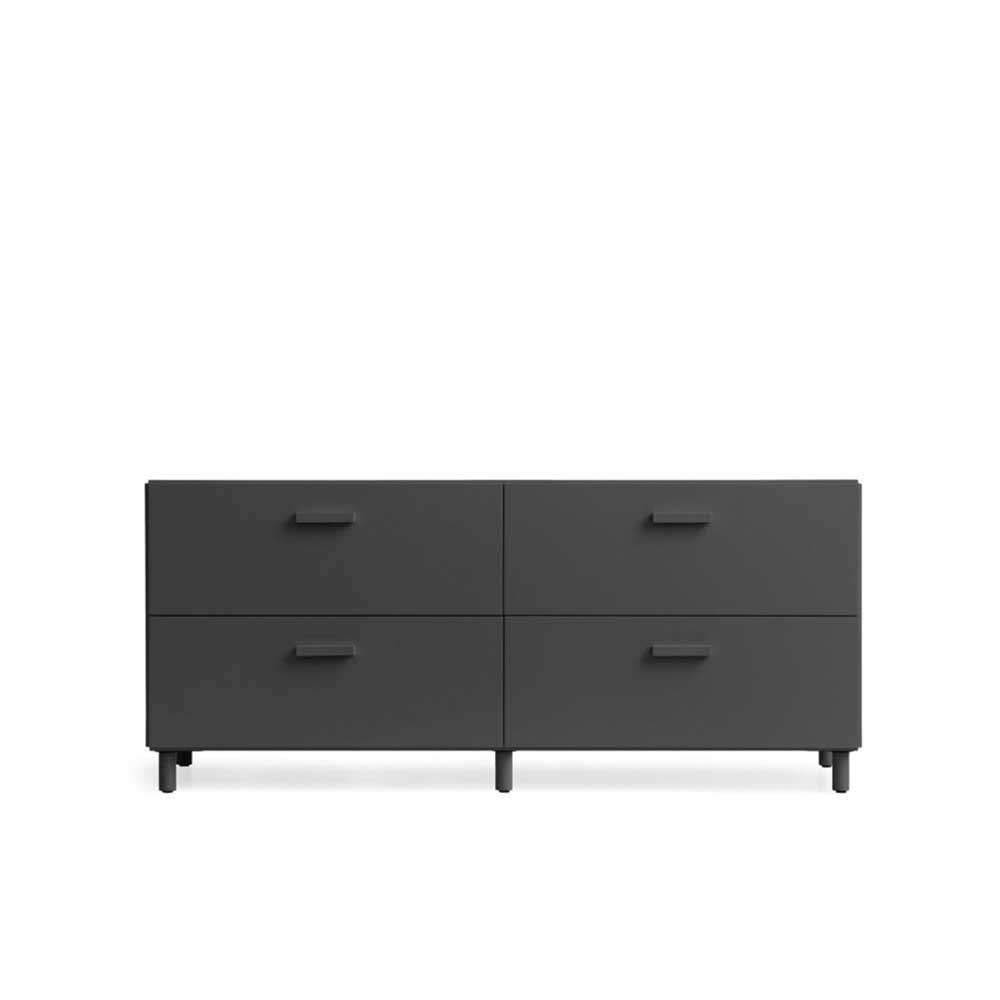 Cómoda baja de la gama Relief con cuatro cajones. Todas las cómodas de la gama Relief pueden unirse fácilmente entre sí. Disponibles en cinco colores y tres tamaños diferentes, permiten crear combinaciones únicas. La parte trasera de las cómodas Relief es tan bonita como la delantera. Así podrá divertirse organizándolas, dando rienda suelta a su creatividad. Las dimensiones son: ancho 123 cm x fondo 41 cm x alto 46,6 cm. Las dimensiones interiores de cada cajón son: ancho 54 cm x fondo 36,3 cm x alto 17 cm. Las cómodas Relief se entregan desmontadas.