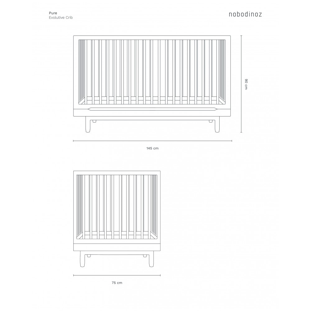 La cuna Pure, fabricada en madera maciza de roble, es evolutiva y acompañará a su hijo durante todo su crecimiento con estilo. Gracias al kit evolutivo, podrá darle una nueva vida a la cuna Pure transformándola en una cama junior.