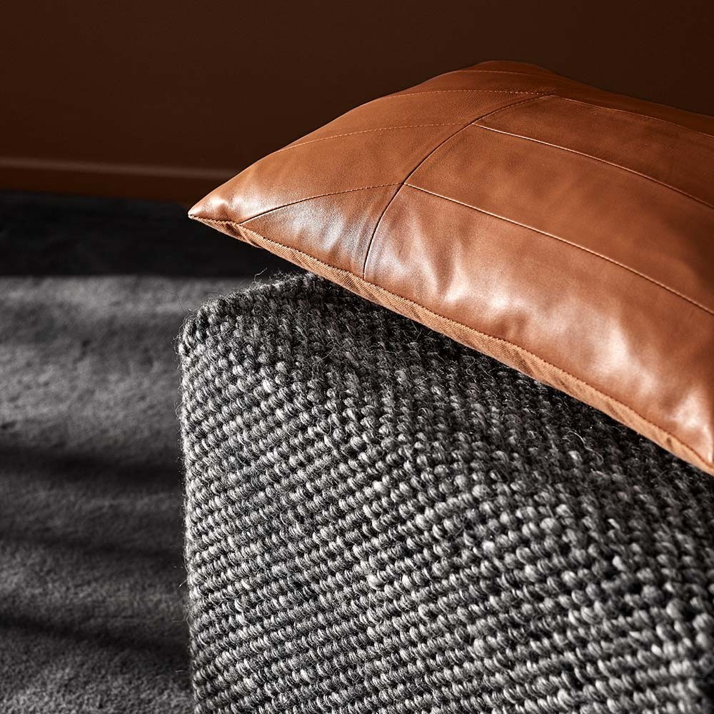 El cojín Coria gris oscuro, diseñado por AYTM, aporta suavidad y elegancia a cualquier interior. Su delicada piel y sus formas geométricas son las señas de identidad de esta colección de cojines muy elegantes.