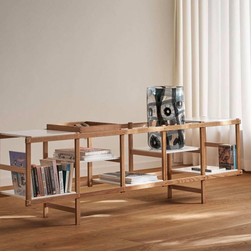 Descubra el sistema de estanterías Frame creado por el diseñador Harald Hermanrud para la marca Design House Stockholm. Fáciles de montar, estas delgadas estanterías son una solución de almacenamiento que combina estilo y practicidad. Fabricados en madera de roble, aportarán un toque natural y cálido a su decoración. Disponible en los modelos Low, High Small y Medium, el estante Frame cambia de tamaño y forma para adaptarse a su interior. Cree su propia estantería personalizada eligiendo entre las dos bandejas disponibles.