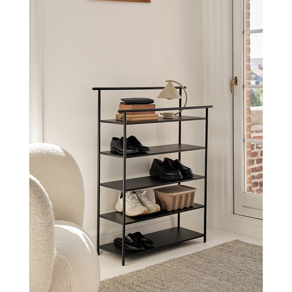 Esta estantería Dora, fabricada en hierro con recubrimiento en polvo, cuenta con cinco espaciosos estantes. Será perfecto para guardar sus zapatos en el pasillo o para organizar sus diversos objetos en cualquier habitación de su casa y le dará un toque elegante y moderno.