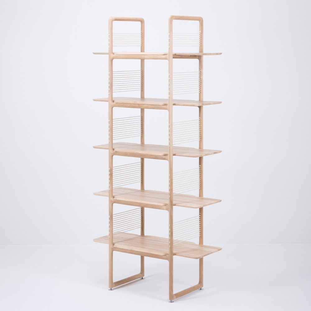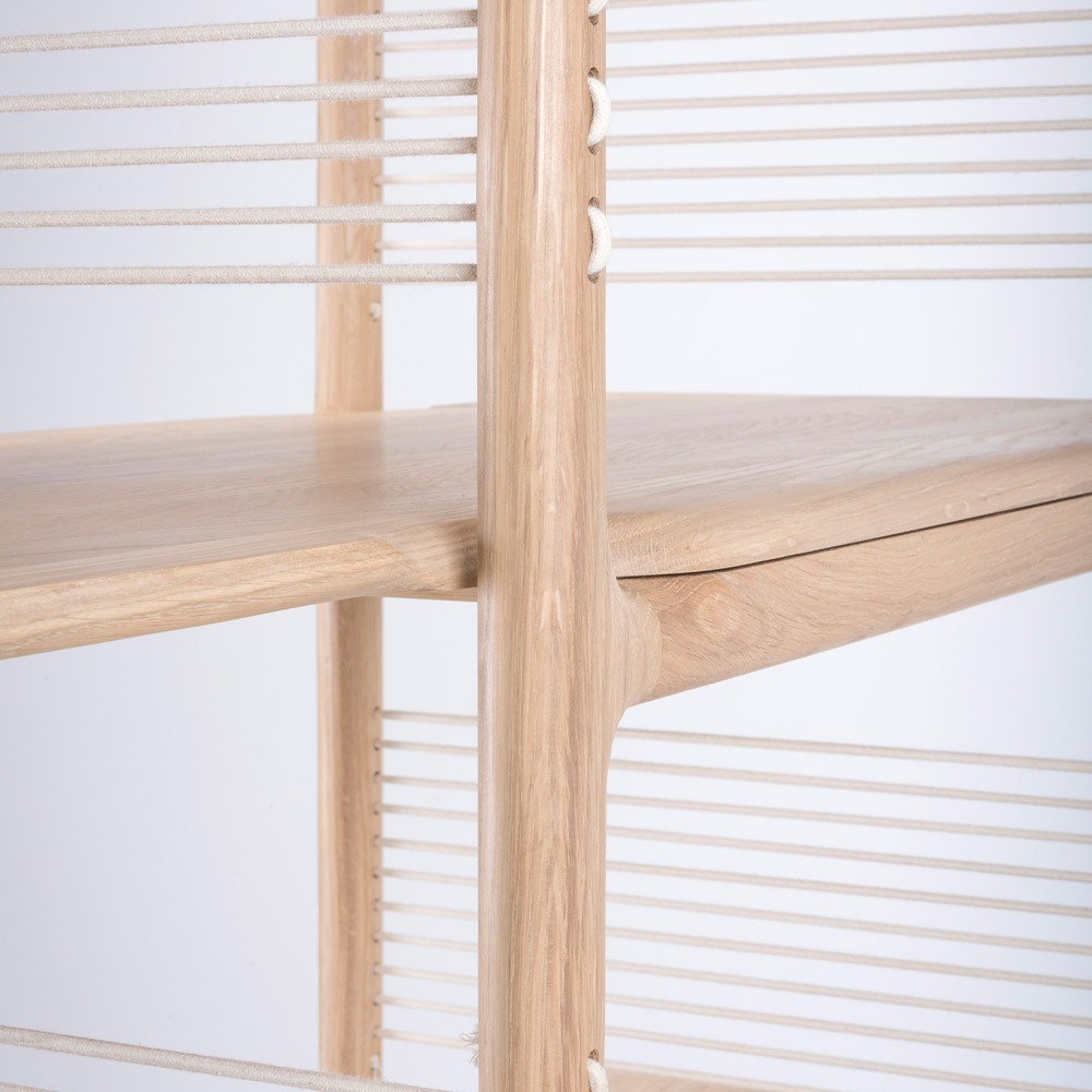 Viste tu habitación con el estante Muse en roble suave y su diseño minimalista. Guarde sus libros y objetos decorativos en el estante Muse, deslice sus polaroides y postales dentro gracias al sistema de cordones a cada lado del estante. Muse también se puede utilizar como divisor para delimitar espacios habitables. También disponible en versión de 140 cm.