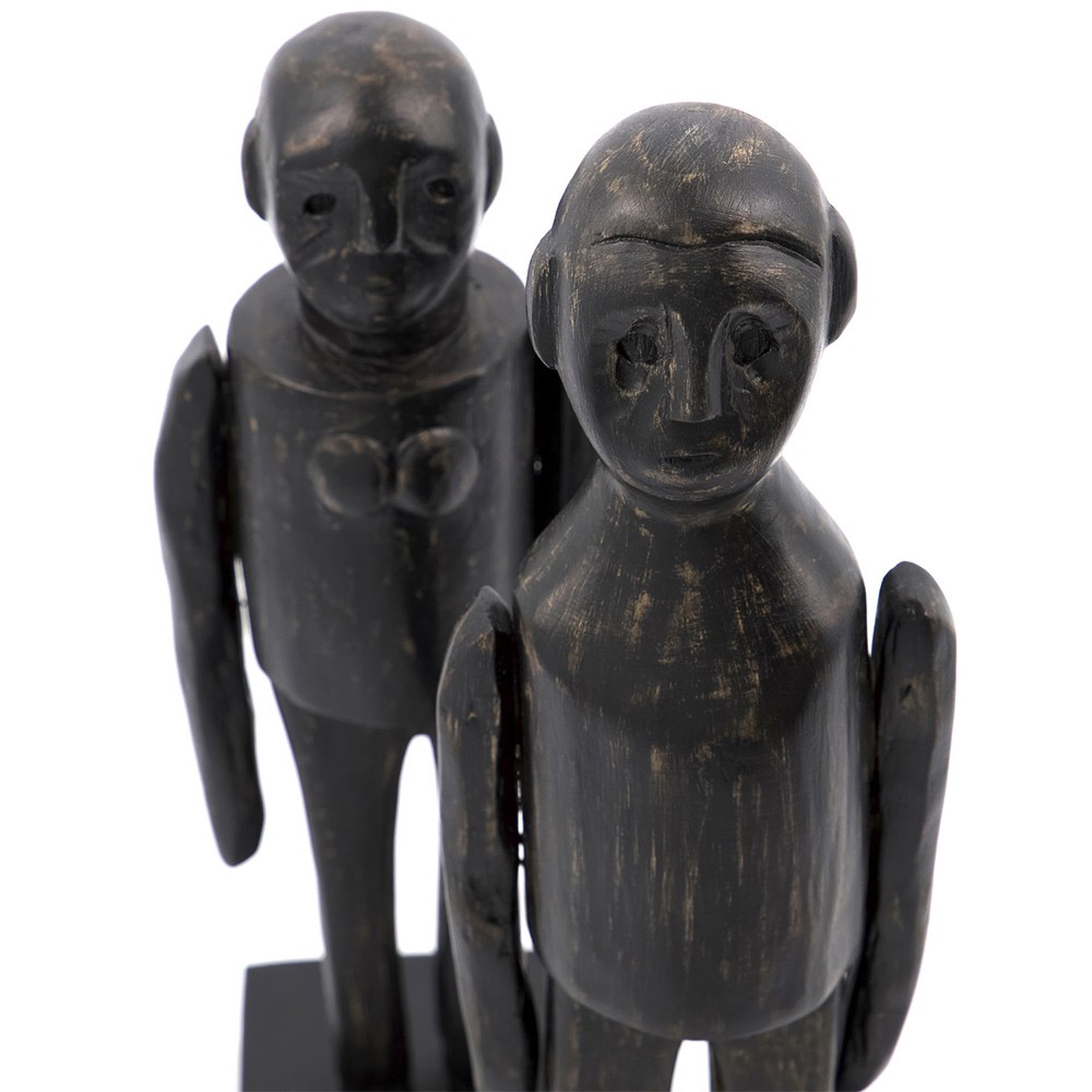 Este conjunto de 2 piezas de arte se llama Conjoints y está tallado a mano en madera de mango. Una es masculina y la otra femenina. La madera de mango tiene un acabado negro que deja entrever el color natural de la madera. Colóquelos en un panel lateral, en el alféizar de la ventana o como parte de una exposición única en una estantería.