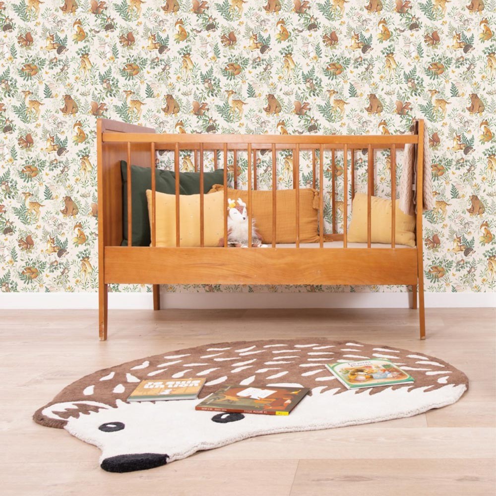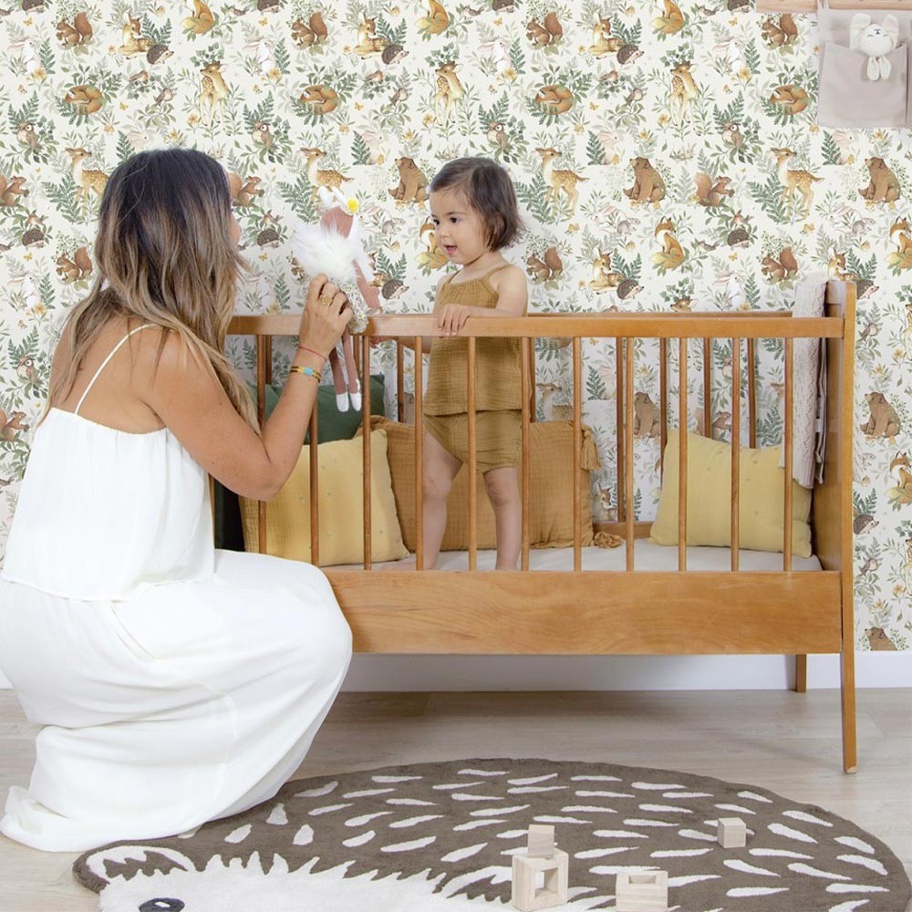 Descubra este magnífico papel pintado Animales del bosque de la colección Bosque en papel no tejido para personalizar el dormitorio de su hijo. El papel no tejido es un material que ha revolucionado el mundo del papel pintado, fácil de colocar, no necesita mesa de empapelar, la cola se aplica directamente sobre la pared y no requiere ninguna preparación particular y se puede cortar fácilmente con un cúter.