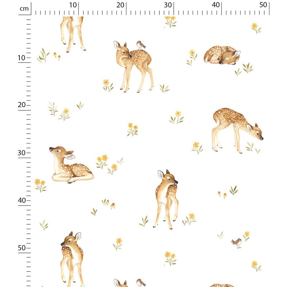 Descubra este magnífico papel pintado de la colección Oh Deer de papel no tejido con cervatillos como motivo para personalizar el dormitorio de su hijo. El papel no tejido es un material que ha revolucionado el mundo del papel pintado, fácil de colocar, no necesita mesa de empapelar, la cola se aplica directamente sobre la pared y no requiere ninguna preparación especial y se puede cortar fácilmente con un cúter.