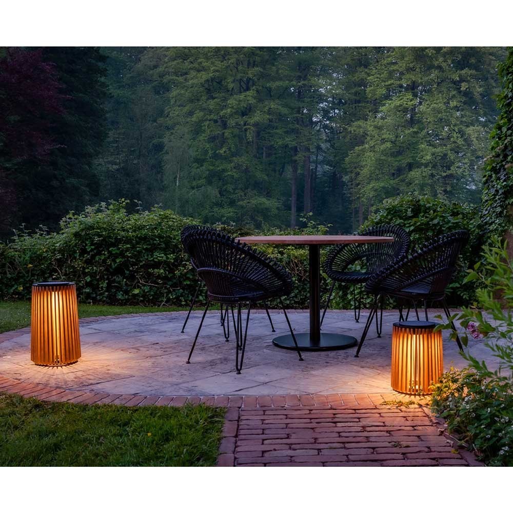 ¿Busca una lámpara de diseño que dure? Maya podría ser justo lo que está buscando. Su cuerpo está fabricado con listones de teca reciclada, hechos a mano a partir de nuestros propios recortes por artesanos experimentados. Estos listones encierran armoniosamente un módulo solar LED, que contrasta sutil y elegantemente con la estructura negra con recubrimiento en polvo. Gracias a sus líneas caladas, Maya difunde una luz suave y cálida, ideal para crear un ambiente acogedor y encantador en un instante.