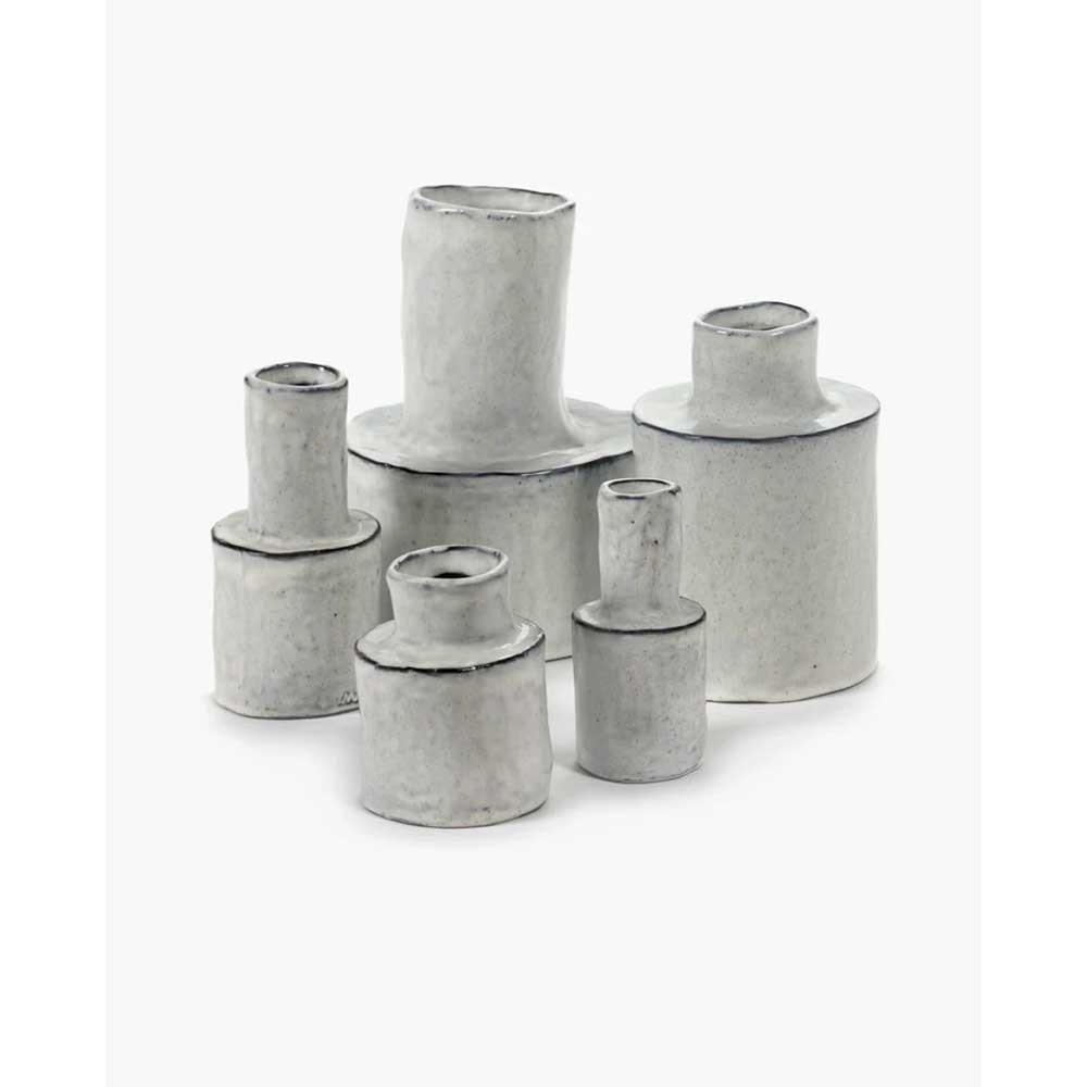 Los jarrones Héléna de color blanco roto tienen un diseño seductor y sobrio, realzado por la sutil irregularidad de su forma cilíndrica. Esta imperfección controlada les confiere un encanto único y artesanal. Adornados con flores o presentados solos, aportan un auténtico toque decorativo.