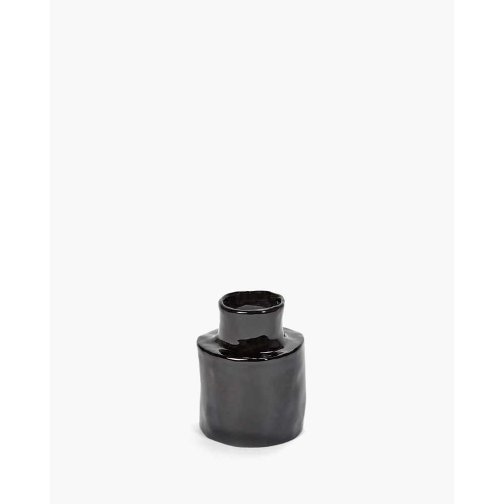Con su elegante silueta cilíndrica, los jarrones negros de Héléna cautivan por su carácter singular. Sus formas irregulares están llenas de encanto y revelan el trabajo artesanal que se ha empleado en su creación. Son verdaderos objetos decorativos que realzan cualquier espacio, tanto si están llenos de flores como si se exponen solos.