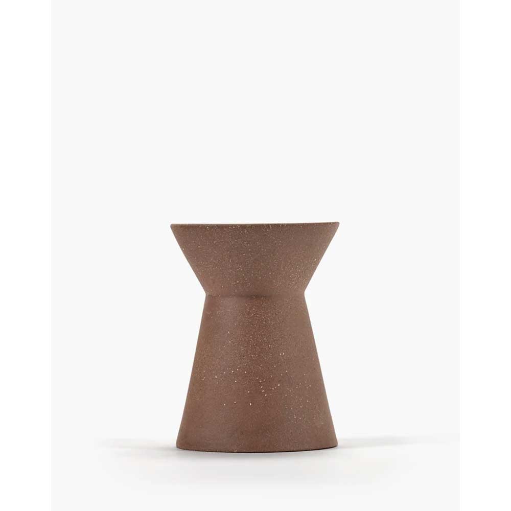 Marie-Ann es una colección de jarrones y dos portavelas de arcilla roja enriquecida con chamota, que ofrece una textura cruda y mate al tacto. Sin esmaltar por fuera, cada objeto tiene un revestimiento interior de silicona que lo hace impermeable. Las formas deliberadamente arquetípicas y geométricas confieren a la colección una gran versatilidad, adaptándose armoniosamente a una gran variedad de estilos de interior.