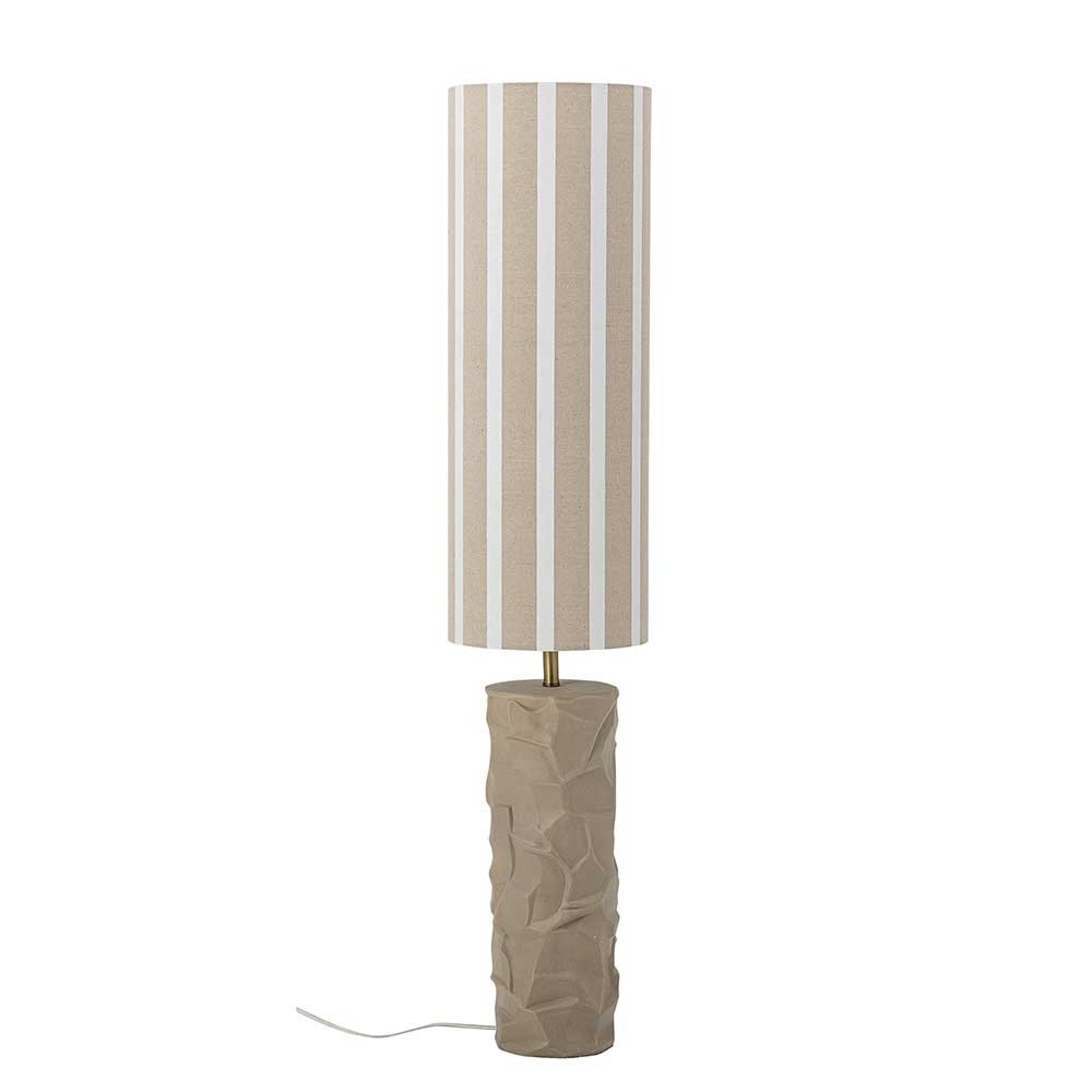 La lámpara de pie Jani de Bloomingville es una elegante lámpara de pie que combina un diseño moderno con un toque de formas naturales. La base de la lámpara tiene una textura orgánica, mientras que el color neutro ofrece una expresión tranquila y terrosa. La sencilla pantalla está decorada con rayas verticales que crean un bello contraste con el aspecto natural de la base.
