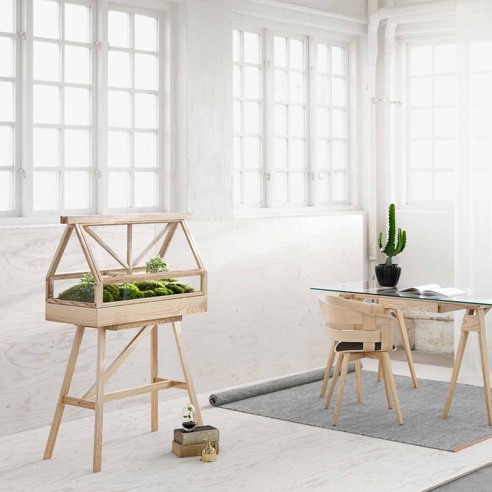 El dúo de diseñadores Atelier 2+ ha creado un invernadero para Design House Stockholm que es lo suficientemente pequeño para uso en interiores, pero lo suficientemente grande como para albergar un jardín en miniatura. Un rincón de naturaleza y vegetación incluso para los interiores más pequeños.