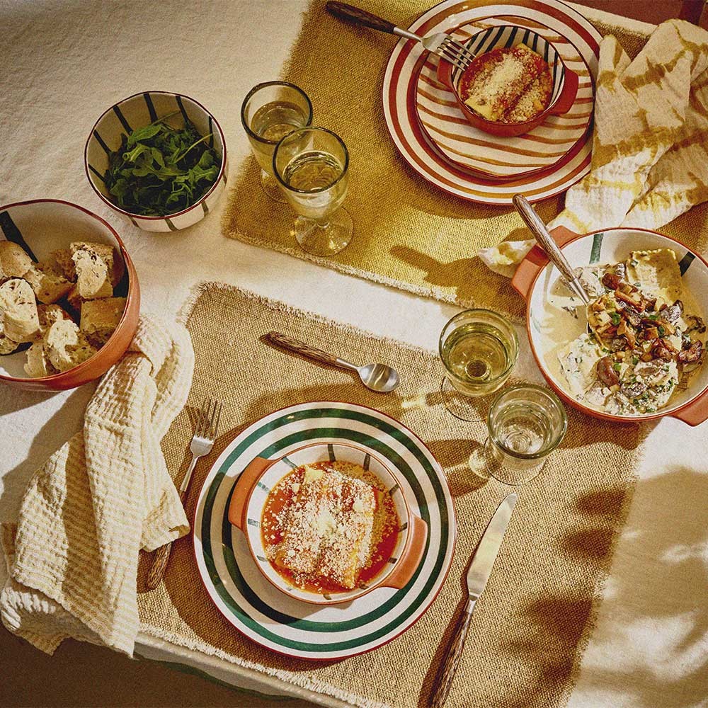 ¿Quiere dar un toque de color a sus comidas? Déjese seducir por la colección Frivoleuna mantelería tejida a mano que combina suavidad y vitalidad. Compuesta por suaves manteles individuales (85% algodón, 15% viscosa) y servilletas a juego (100% algodón), se presenta en una gama de tonos frescos y alegres: verde claro, aguamarina oscuro, camel, cúrcuma, violeta, óxido, marrón, caqui... ¡De usted depende crear la mesa que más le guste! Completa tu decoración con un juego de 3 servilletas estampadas para una armonía perfecta.