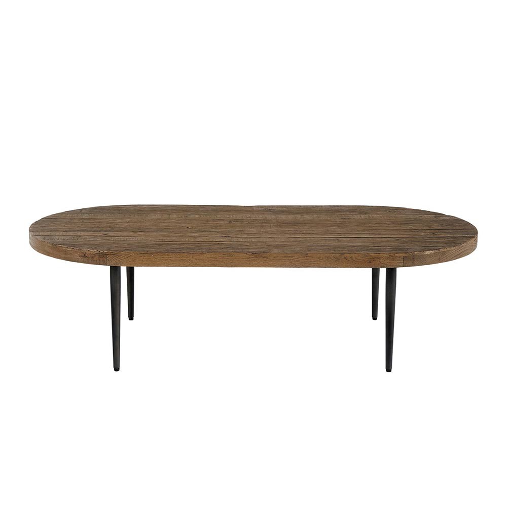 Déjese seducir por el encanto natural y el carácter de la mesa de centro LEO, una elegante mezcla de roble en bruto y finas patas de metal.