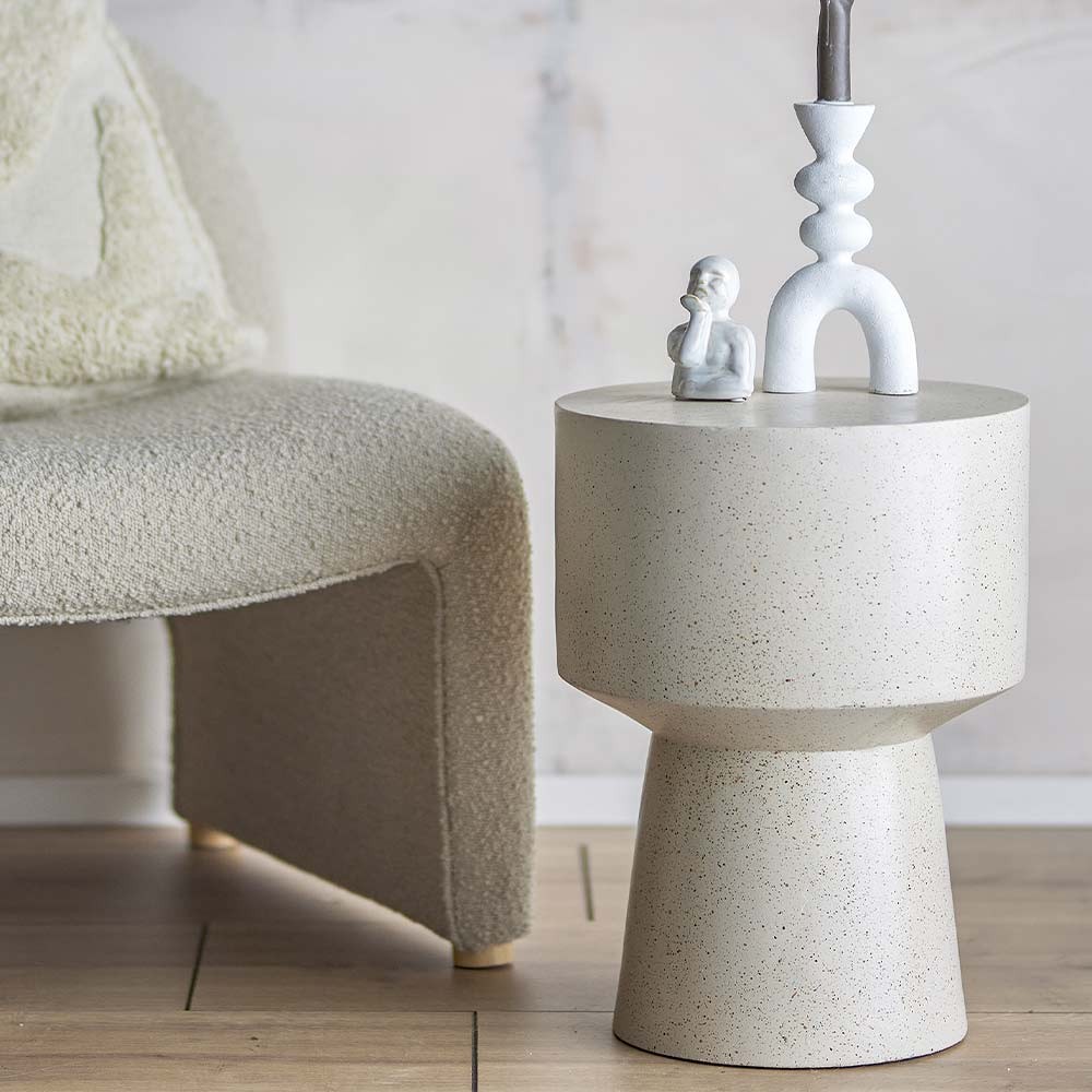 La mesa auxiliar Basso de Bloomingville es una elegante y moderna mesa auxiliar en un tono beige claro. Fabricada en resina con un acabado similar al hormigón, combina un aspecto crudo con una forma fresca y gráfica. Su diseño minimalista la convierte en un complemento perfecto para cualquier interior, como elemento práctico y decorativo a la vez.