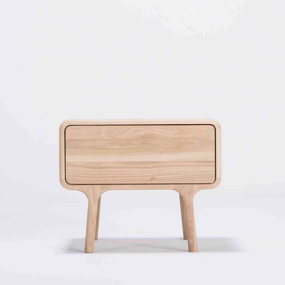 Tras el éxito de las cajoneras y armarios de la gama Fawn, los diseñadores de Gazzda respondieron a las múltiples peticiones de sus clientes y diseñaron una mesa de noche para completar la gama. Con Fawn como compañero de cama, ¡solo puedes tener suerte! Con su aspecto suave, sus bordes lisos, su estructura de roble macizo (firma de la gama Fawn), la mesita de noche Fawn está perfectamente equilibrada.