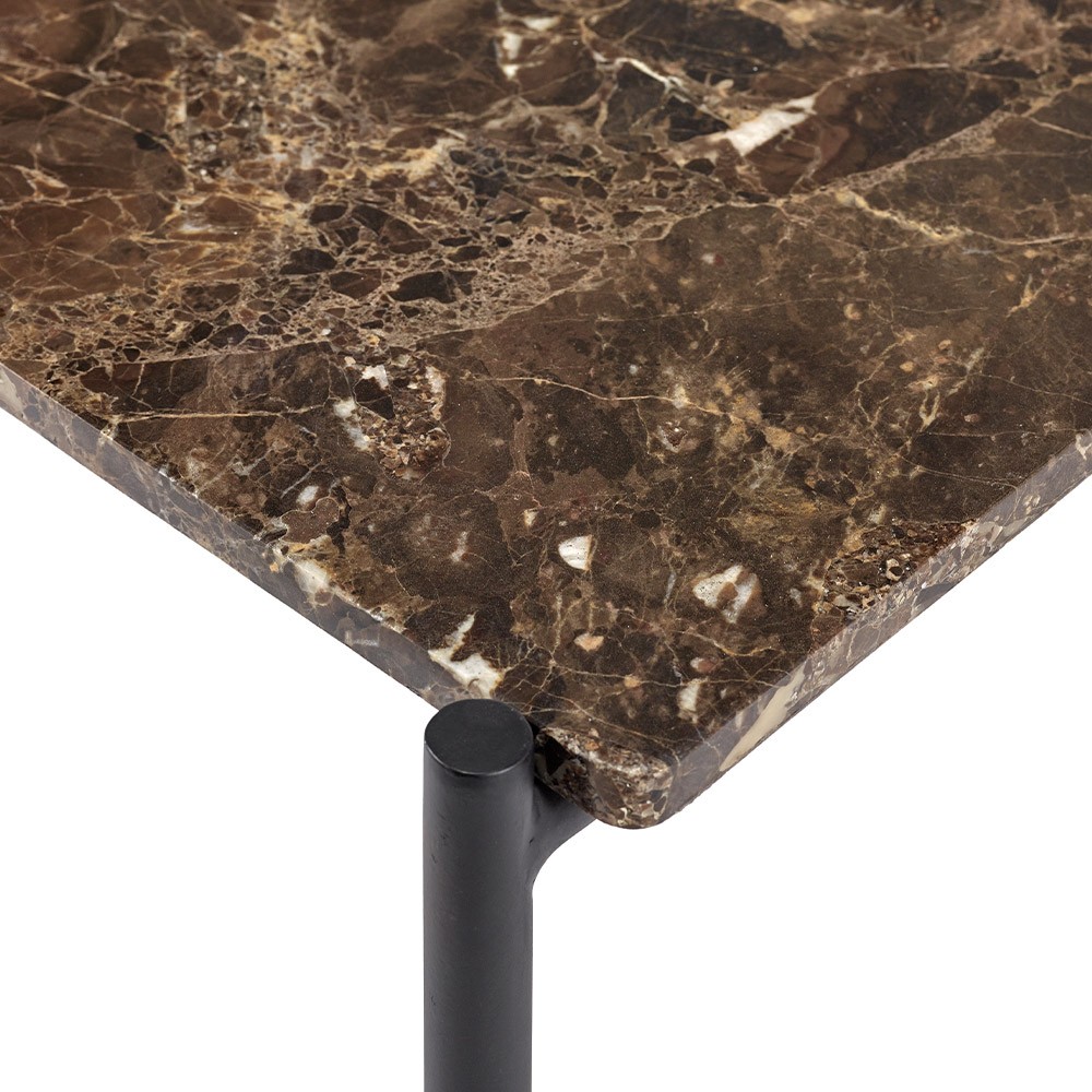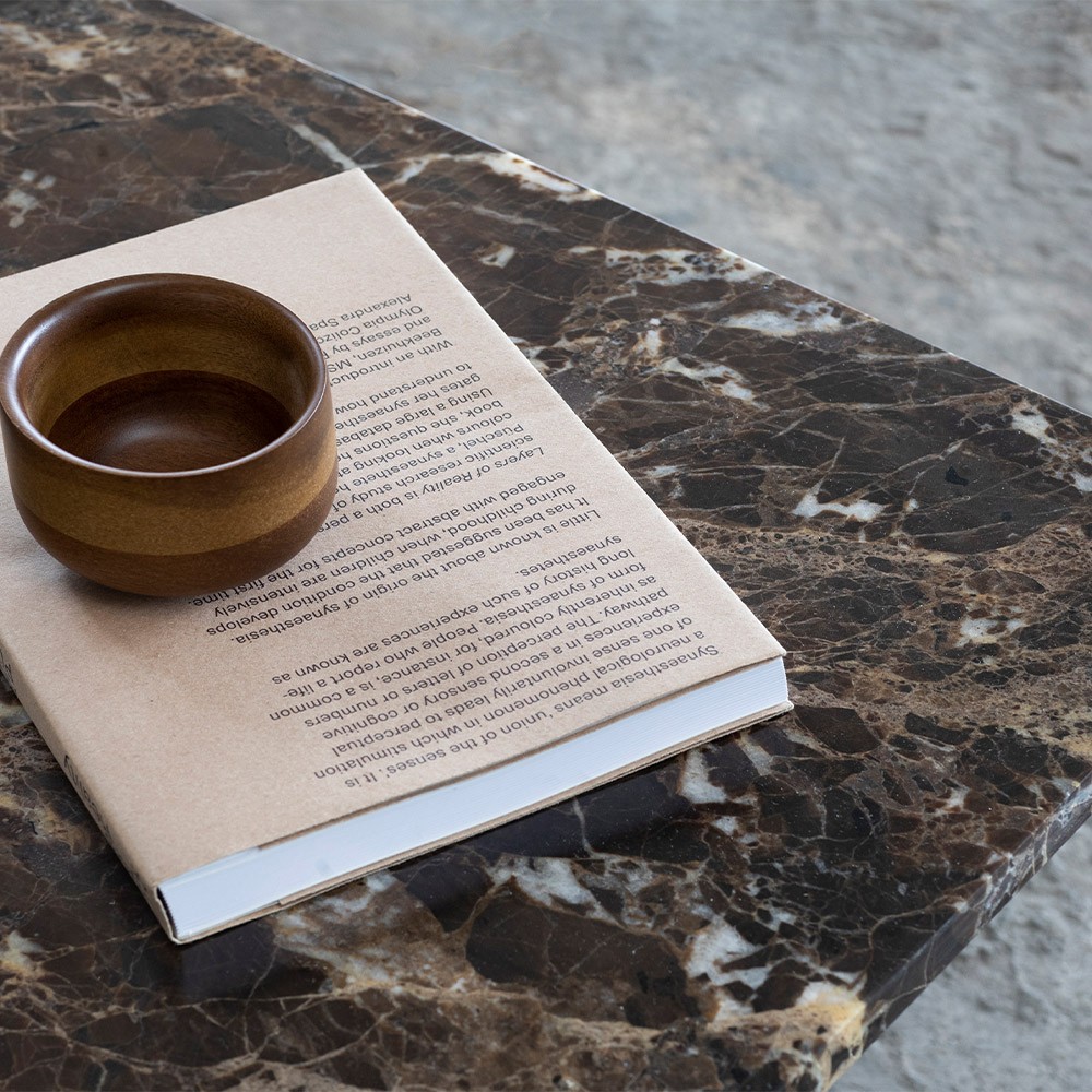 La gama Curve de sofás y sillones del diseñador Sylvain Willenz se complementa con una mesa auxiliar de carácter imponente con su impresionante tablero de mármol marrón. La mesa auxiliar de mármol marrón Curve agregará carácter a su interior.